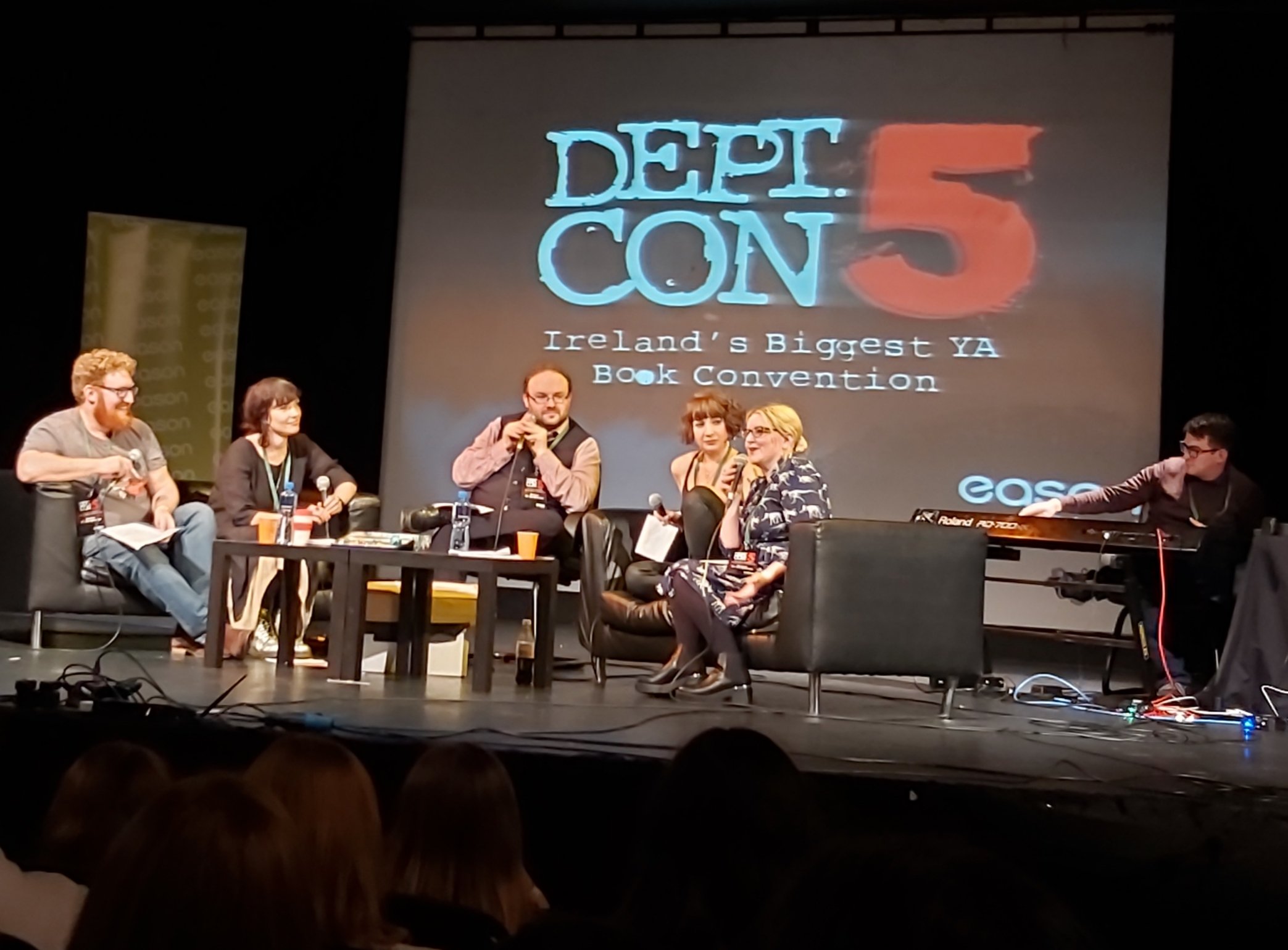 DnD at Deptcon returned in 2019 to the Liberty Hall theatre for Deptcon 5. Again Graham served as Gamesmaster, while Deirdre Sullivan, Dave Rudden, Moïra Fowley and Melinda Salisbury embarked on a magical quest. The rules were specially written for the occasion by Graham, where any injury instantly leads to death, only mitigated if the player makes a randomly determined death bed confession which utterly changes their character for the rest of the event…